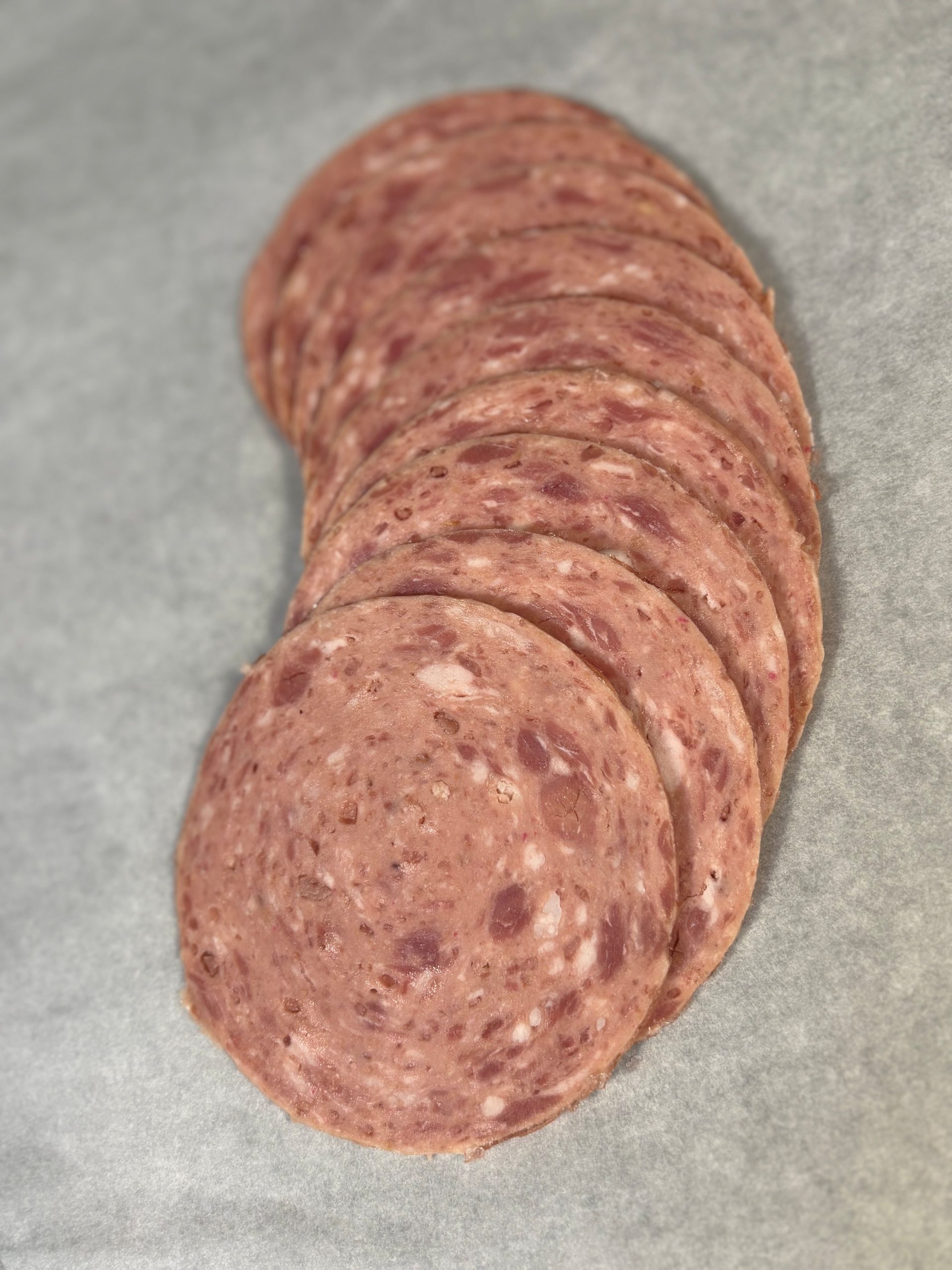 Cold slices of chopped, reformed pork