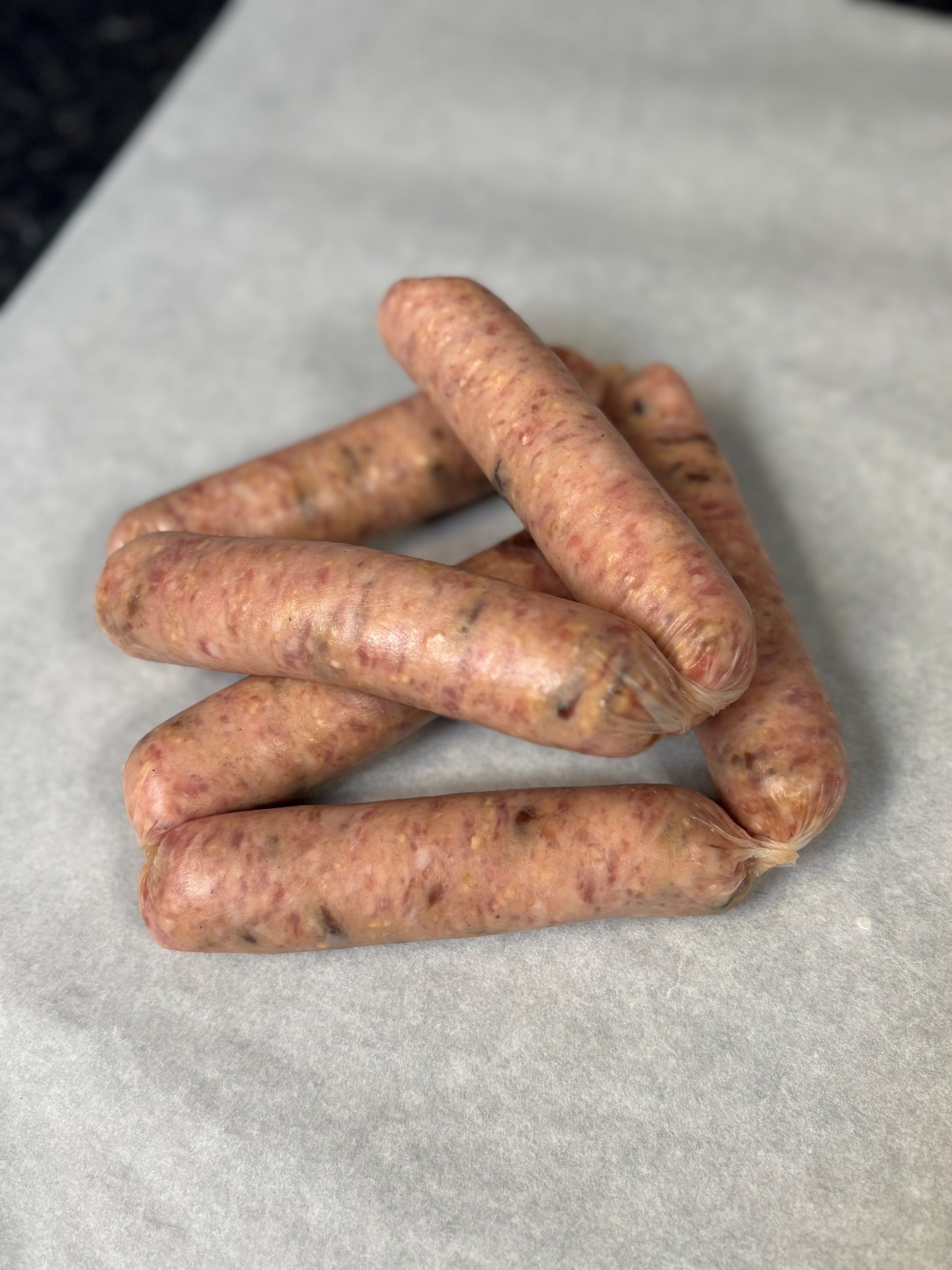 Pork sausage with house made red onion chutney and cranberries – Award Winner!