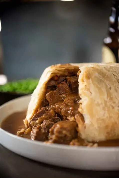 Spoon the steak and kidney mixture into the pastry-lined pudding basin. Brush the rim of the pastry with water. Roll the remaining pastry into a circle just large enough to sit on top of the pudding dish and place it over the filling. Trim into place and press the edges together well to seal.