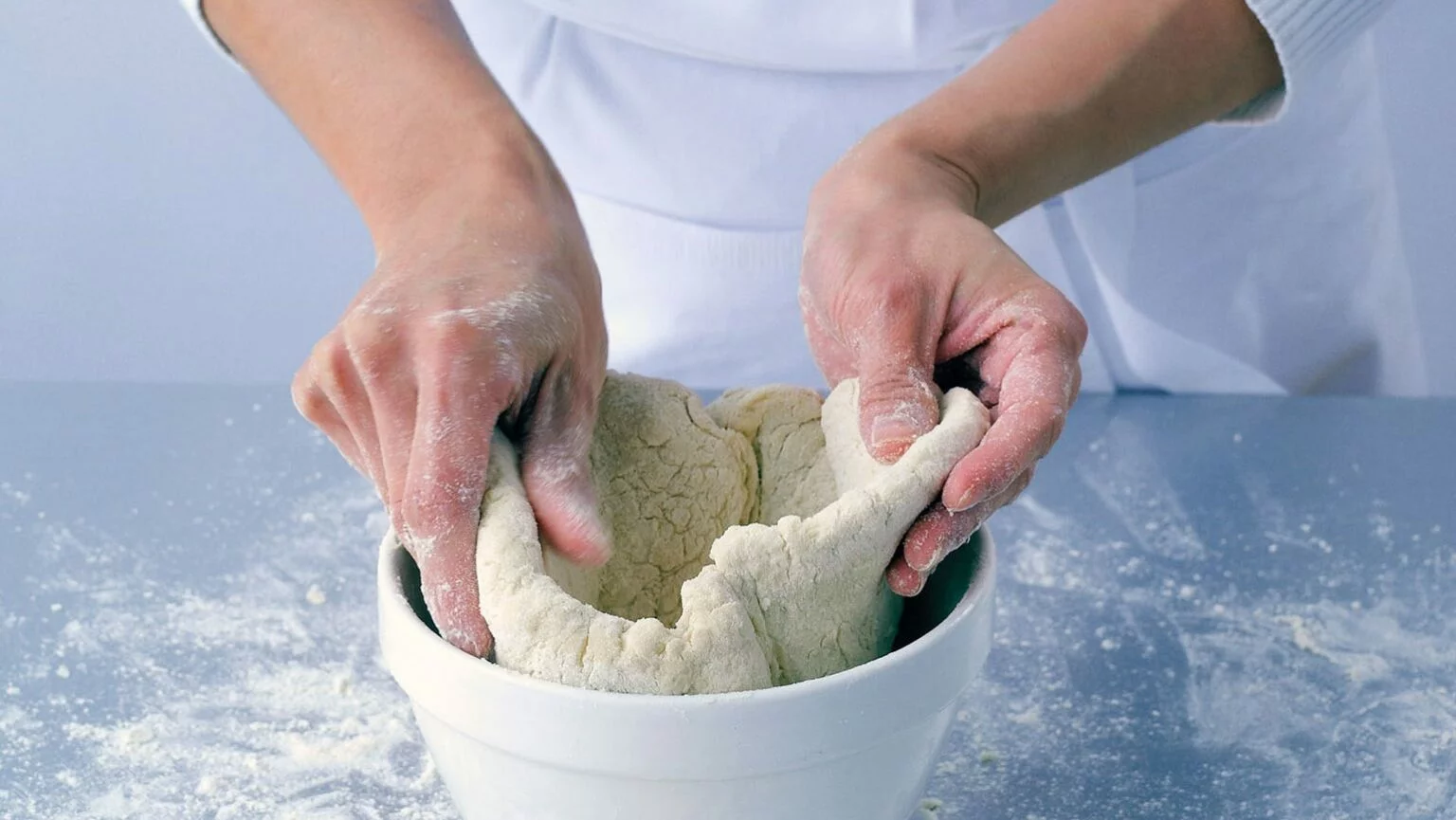 To make the pastry, first sift the flour and ½ teaspoon of salt into a large mixing bowl. Add ground black pepper, then add the suet and mix it into the flour using the blade of a knife. Add a few drops of cold water and start to mix with the knife, using curving movements and turning the mixture around. The aim is to bring it together as a dough, so keep adding drops of water until it begins to get sticky. Now use your hands and bring it all together until you have a nice smooth dough, which leaves the bowl clean. Suet pastry always needs more water than other types, so if it is still a bit dry just go on adding a few drops at a time – you may use around 300ml of water.